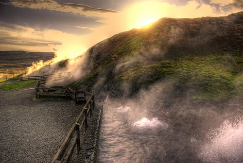 Then during winter, we could stop again at the hotspring Deildartunguhver on our way back after the glacier and take a nice warm bath in a hotspring bathing spa Krauma