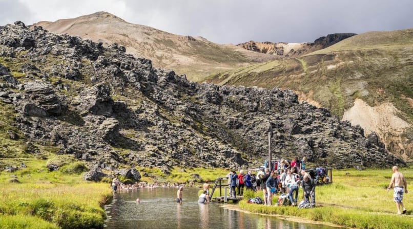 You will have the opportunity to bathe in the natural hot spring surrounding by the raven-black Laugahraun lava field and the most amazing rhyolite mountains that creates all shades of colors, red, green,blue and golden yellow, and that makes Landmannalaugar, one of the wonders of Iceland for visit.